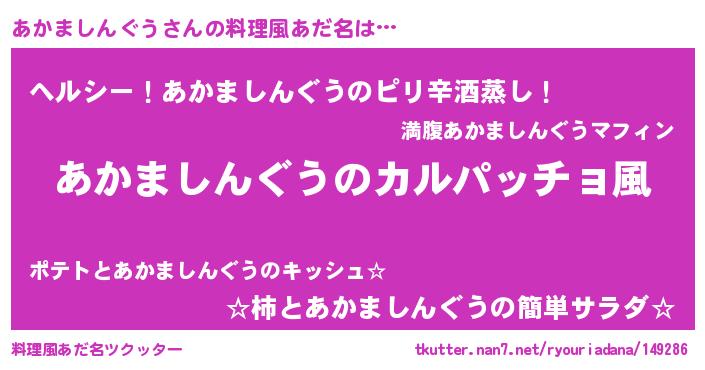 | 意味不明あだ名 | 『住所不定無職あかましんぐう(40歳)』 |