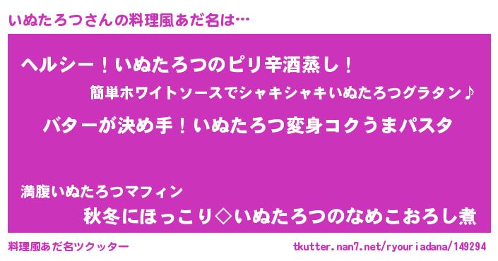 | 女子向けラノベタイトル風あだ名 | 『いぬたろつ恋絵巻』『闇のいぬたろつ』 |