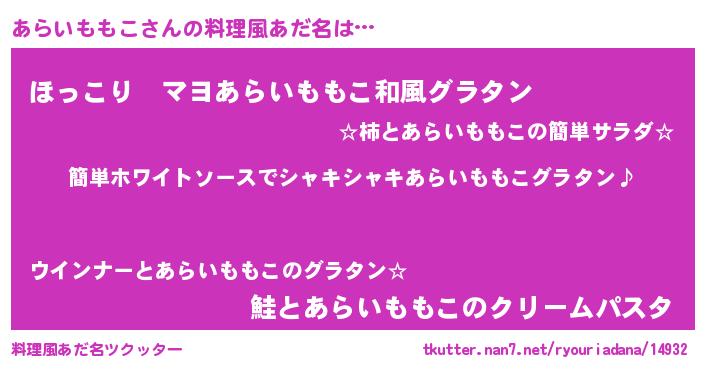 | 男性向けラノベタイトル風あだ名 | 『あらいももこの嫁は女の子じゃないと思った?』 |