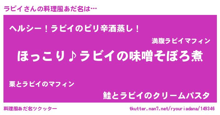 | 男性向けラノベタイトル風あだ名 | 『ラビイの憂鬱』『はたらくラビイさま!』 |