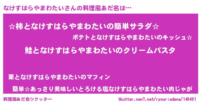| ヘコむあだ名 | 『なけすはらやまわたい(遠い目)』 |
