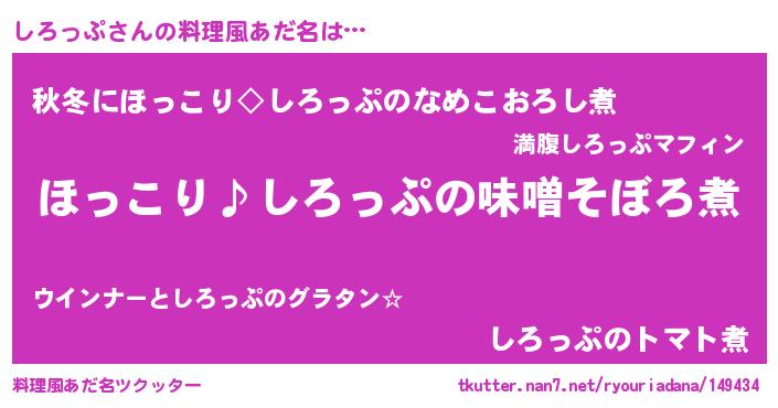 | ポケモン風あだ名 | 『シロチュウ』『シロゴンZ』 |