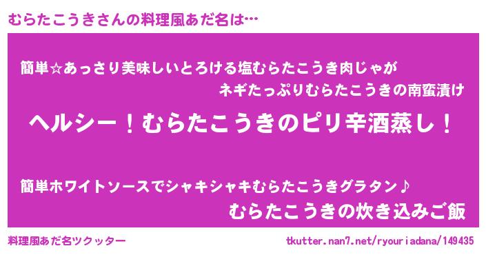 | ヘコむあだ名 | 『むらたこうき(遠い目)』『むらもー』 |