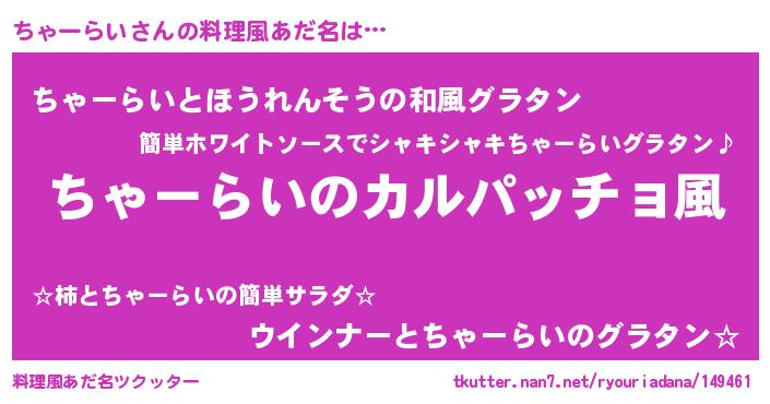 | 意味不明あだ名 | 『住所不定無職ちゃーらい(71歳)』 |