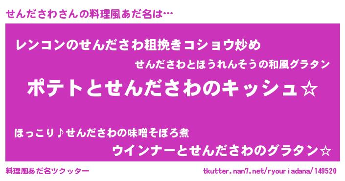 | 女子向けラノベタイトル風あだ名 | 『せんださわの卵を拾いまして』 |
