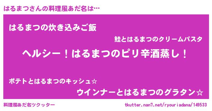 | 意味不明あだ名 | 『自称はるまつ』『はるまつフォーエバー』 |