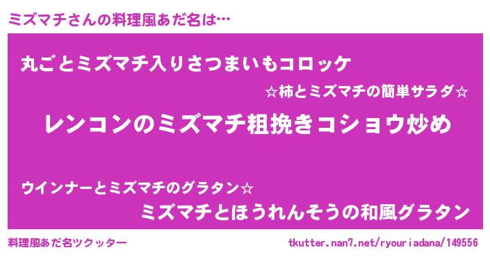 | 胡散臭い通販商品みたいなあだ名 | 『ガンによく効くアガリクス…その名も「ミズマチ」』 |