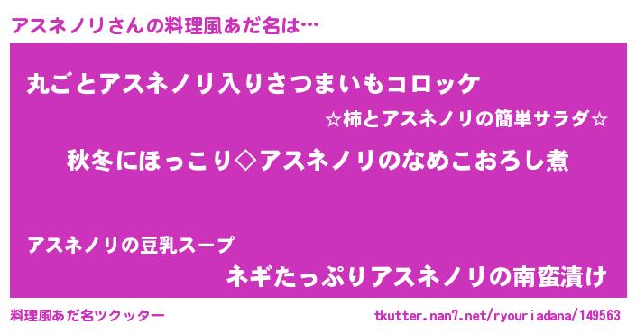 | 胡散臭い通販商品みたいなあだ名 | 『あなたにだけ特別に提供する100年もののヴィンテージワイン…その名も「アスネノリ」』 |