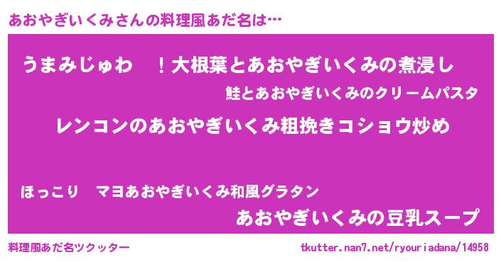 | 意味不明あだ名 | 『自称あおやぎいくみ』 |