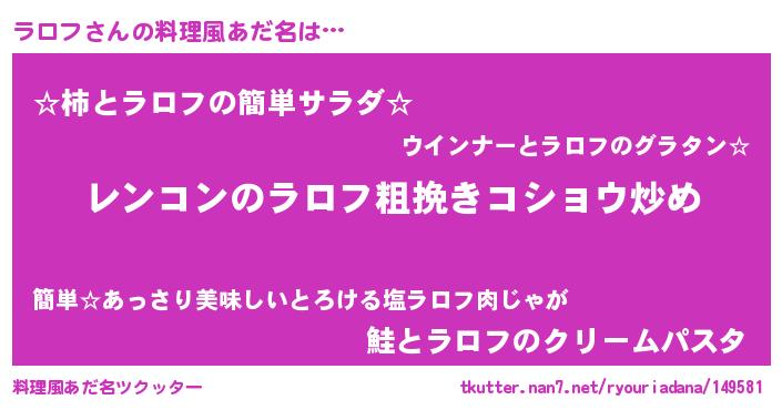 | ヘコむあだ名 | 『牛乳』『ラロフ(笑)』『ラロを』 |