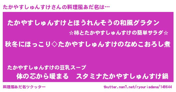 | 肩書あだ名 | 『たかやすしゅんすけプロデューサー』 |