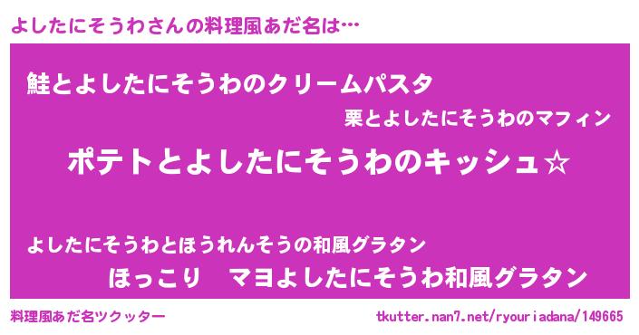 | ピコ太郎風あだ名 | 『ヨシ二郎』『ヨヨ太郎』『ピヨ三郎』 |