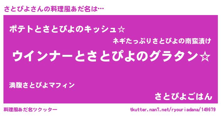 | ファンタジー風あだ名 | 『エターナルサトピヨー』『サトフェル』 |