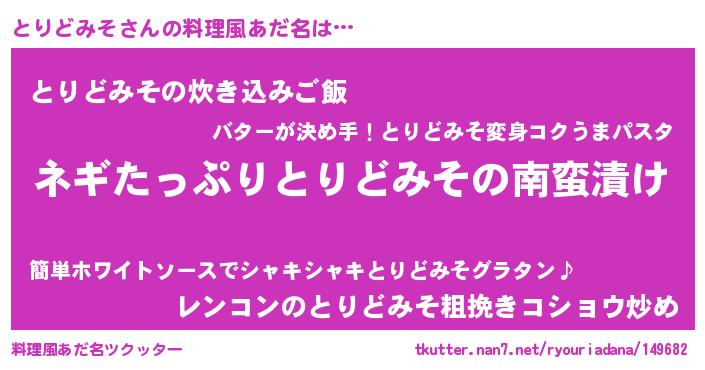 | 意味不明あだ名 | 『ペロリンとりどみそ』『自称とりどみそ』 |