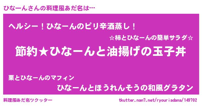 | ファンタジー風あだ名 | 『ヒナフェル』『ゼヒナトゥ』 |