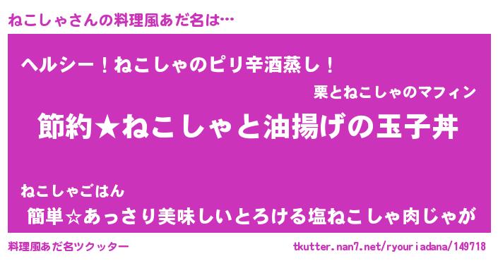 | 男性向けラノベタイトル風あだ名 | 『ねこしゃの憂鬱』 |