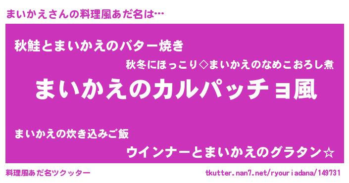 | ヘコむあだ名 | 『まいかえ(苦笑)』『なまこ酢』 |