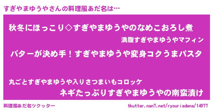 | ヘコむあだ名 | 『すぎにー』『すぎやまゆうや(苦笑)』 |