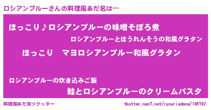 | 意味不明あだ名 | 『住所不定無職ロシアンブルー(12歳)』 |