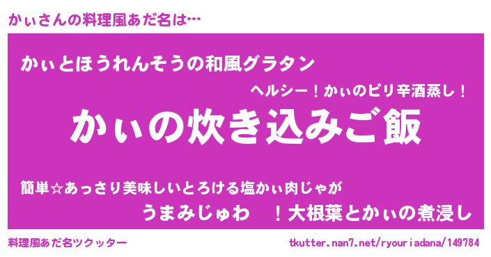 | ヘコむあだ名 | 『なまこ酢』『かぃ(爆)』『かぃにー』 |