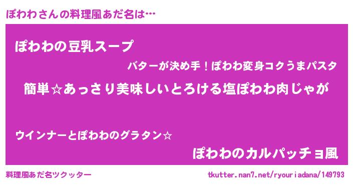 | 意味不明あだ名 | 『永久保存ぽわわ』『ぽわわフォーエバー』 |