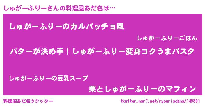 | ヒーロー風カッコイイあだ名 | 『慈愛の使者しゅがーふりー』 |
