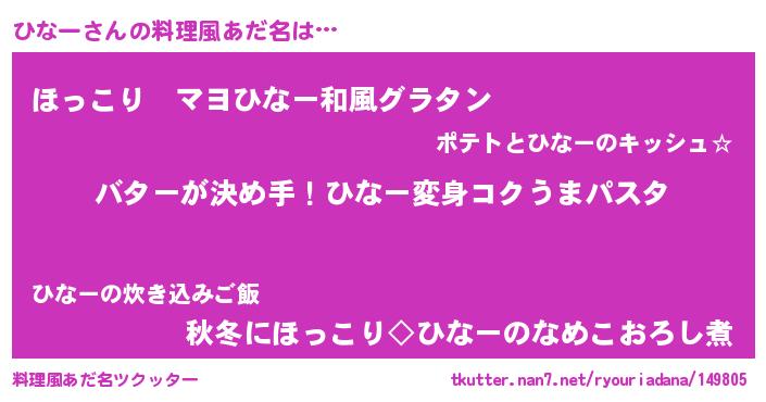 | ヒーロー風カッコイイあだ名 | 『愛の使者ひなー』『仮面ヒナダー』 |