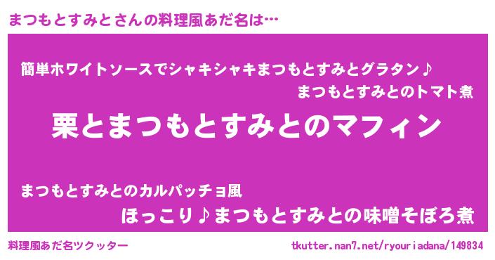 ポケモン風あだ名 | 『マツゴンZ』『ヒマツモトスミト』 |