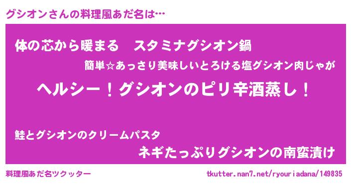| 意味不明あだ名 | 『自称グシオン』『グシオンフォーエバー』 |