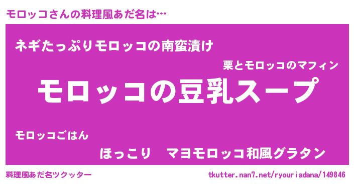 | 女子向けラノベタイトル風あだ名 | 『モロッコは平凡を望む』 |