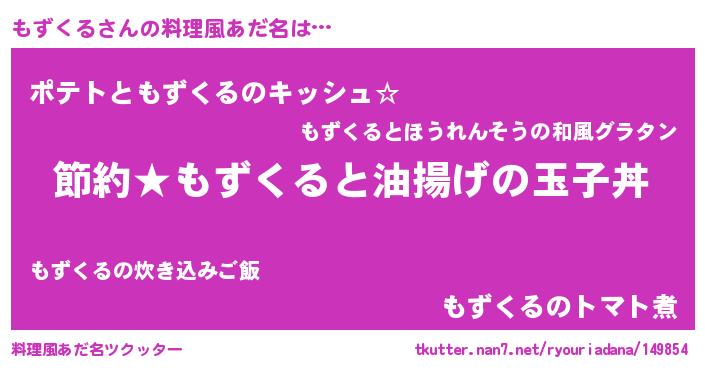 | 胡散臭い通販商品みたいなあだ名 | 『モテモテ間違いなしブレスレット…その名も「もずくる」』 |