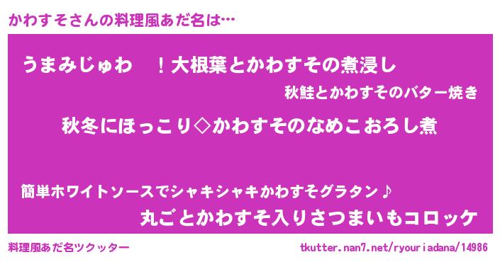 | 意味不明あだ名 | 『かわすそフォーエバー』 |