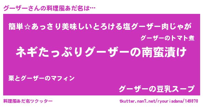 | 意味不明あだ名 | 『ペロリングーザー』『永久保存グーザー』 |