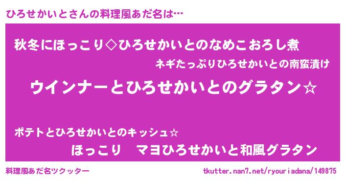 ひろせかいとさんの料理風あだ名をツクッター!