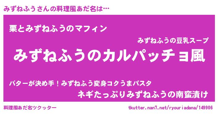 | 女子向けラノベタイトル風あだ名 | 『みずねふうが死なない童話 林檎のみずねふうの診療簿』 |