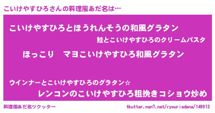 | 意味不明あだ名 | 『住所不定無職こいけやすひろ(91歳)』 |