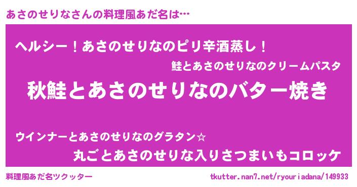 | ヒーロー風カッコイイあだ名 | 『ネオアサノセリナ』『仮面アサダー』 |