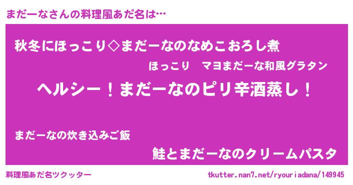 | 女子向けラノベタイトル風あだ名 | 『闇のまだーな』『死神まだーなの再婚』 |