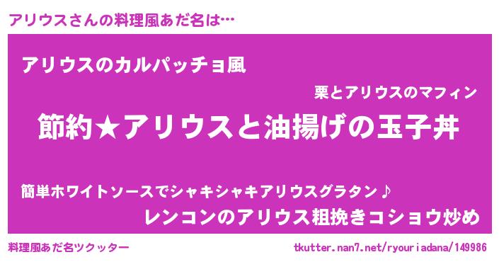 | 胡散臭い通販商品みたいなあだ名 | 『モテモテ間違いなし水晶球…その名も「アリウス」』 |