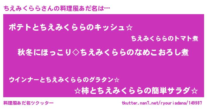 | 男性向けラノベタイトル風あだ名 | 『ちえみくららに滅ぼされるだけの簡単なお仕事です』 |
