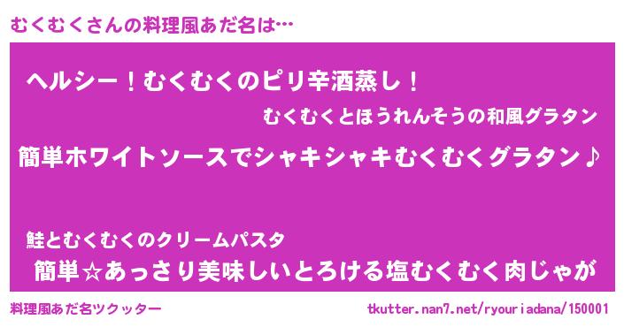 | 男性向けラノベタイトル風あだ名 | 『むくむくの嫁は女の子じゃないと思った?』 |