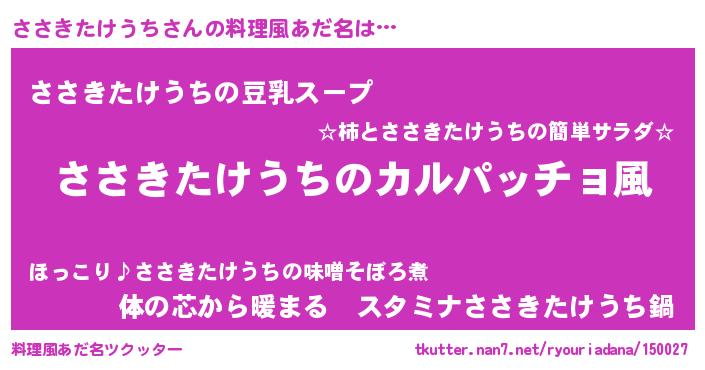 | 意味不明あだ名 | 『住所不定無職ささきたけうち(98歳)』 |