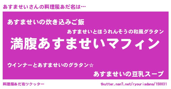 | 女子向けラノベタイトル風あだ名 | 『異世界で失敗しない100のあすませい』 |
