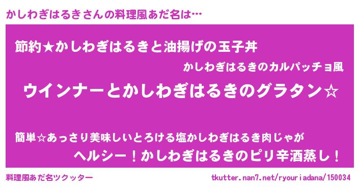 | 肩書あだ名 | 『かしわぎはるき大統領』 |