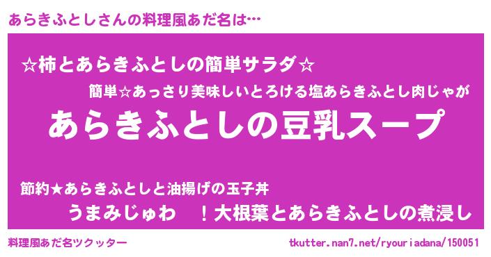 | ヘコむあだ名 | 『あらぷりん』『豆乳』 |