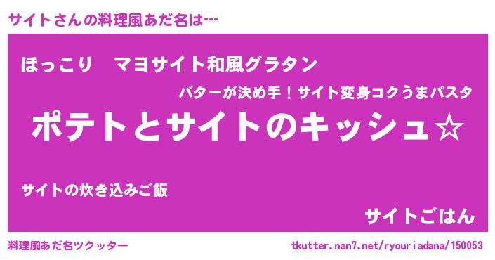 | 女子向けラノベタイトル風あだ名 | 『サイトの卵を拾いまして』 |