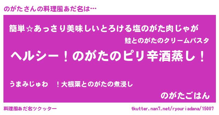 | 男性向けラノベタイトル風あだ名 | 『Re:のがたから始める異世界生活』 |