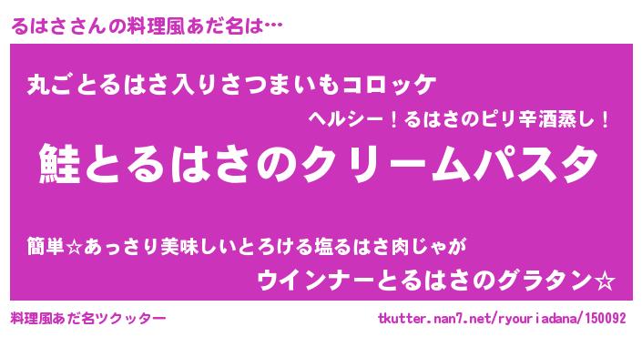 | 女子向けラノベタイトル風あだ名 | 『死神るはさの再婚』『るはさ伯爵の花嫁』 |