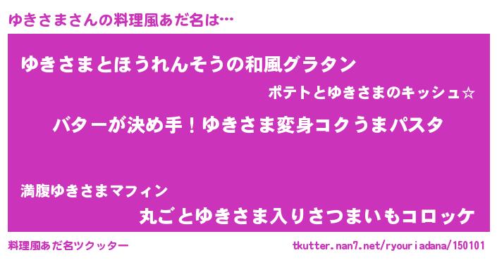 | 男性向けラノベタイトル風あだ名 | 『ノーゲーム・ノーユキサマ』 |