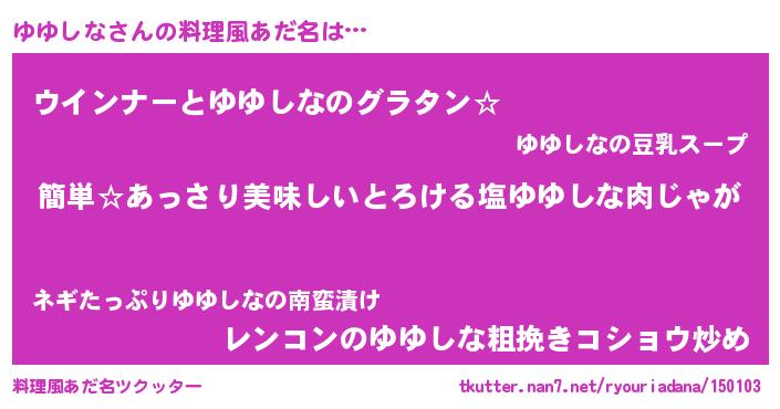 | ヒーロー風カッコイイあだ名 | 『ネオユユシナ』『ウルトラゆゆしなマン』 |